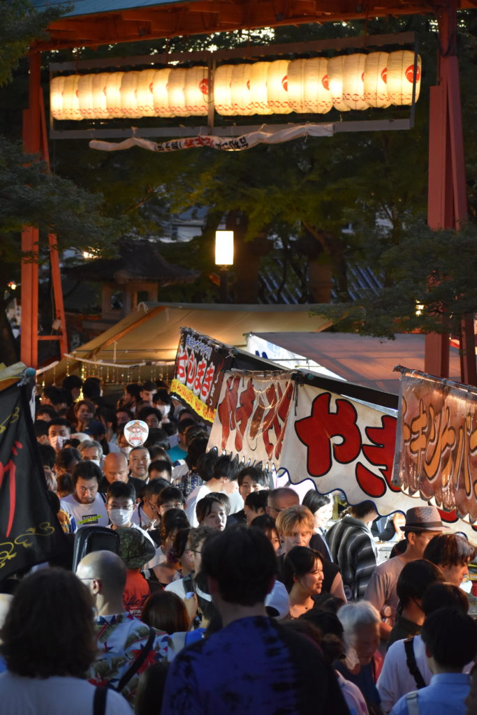 あたりが暗くなってきて、提灯がつき、とても良い雰囲気と祭りの熱気が入りまじって
